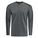 A hard-working Henley with a casual, contemporary look. The lightweight fabric flexes for added comfort and range of movement, curved flatlock seams for optimal fit, unique front pocket design with pencil stall.